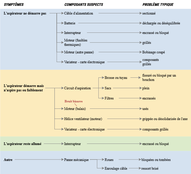 Il existe plusieurs types d’aspirateurs, pour lesquelles les indications de réparation peuvent être fort différentes :