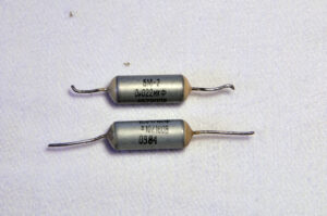 A l’œil nu, les condensateurs peuvent être gonflés ou carrément explosés. Cela est particulièrement le cas avec les électrolytiques : la croix de leur chapeau peut se déformer. il faut alors le remplacer. Les polypropylènes peuvent également avoir explosé, souvent sur de plus vieilles machines.