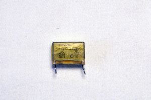 Condensateurs polypropylène (X2) : petits blocs rectangulaires en plastique, ils ont également deux pattes.