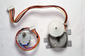 Les moteurs pas à pas sont plus simples à tester. Lorsque l’on met en court-circuit deux de leurs 4 fils (plusieurs tests à faire), ils tournent plus difficilement. Si ce n’est pas le cas, le moteur est endommagé.