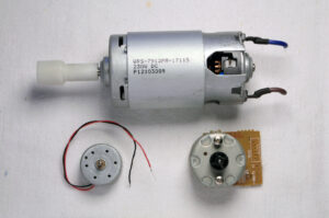 Les moteurs DC fonctionnent sur courant continu et leur stator (partie fixe) est composée d’aimants permanents. La même méthode s’applique pour les réparer (charbons, bobines du stator, …)